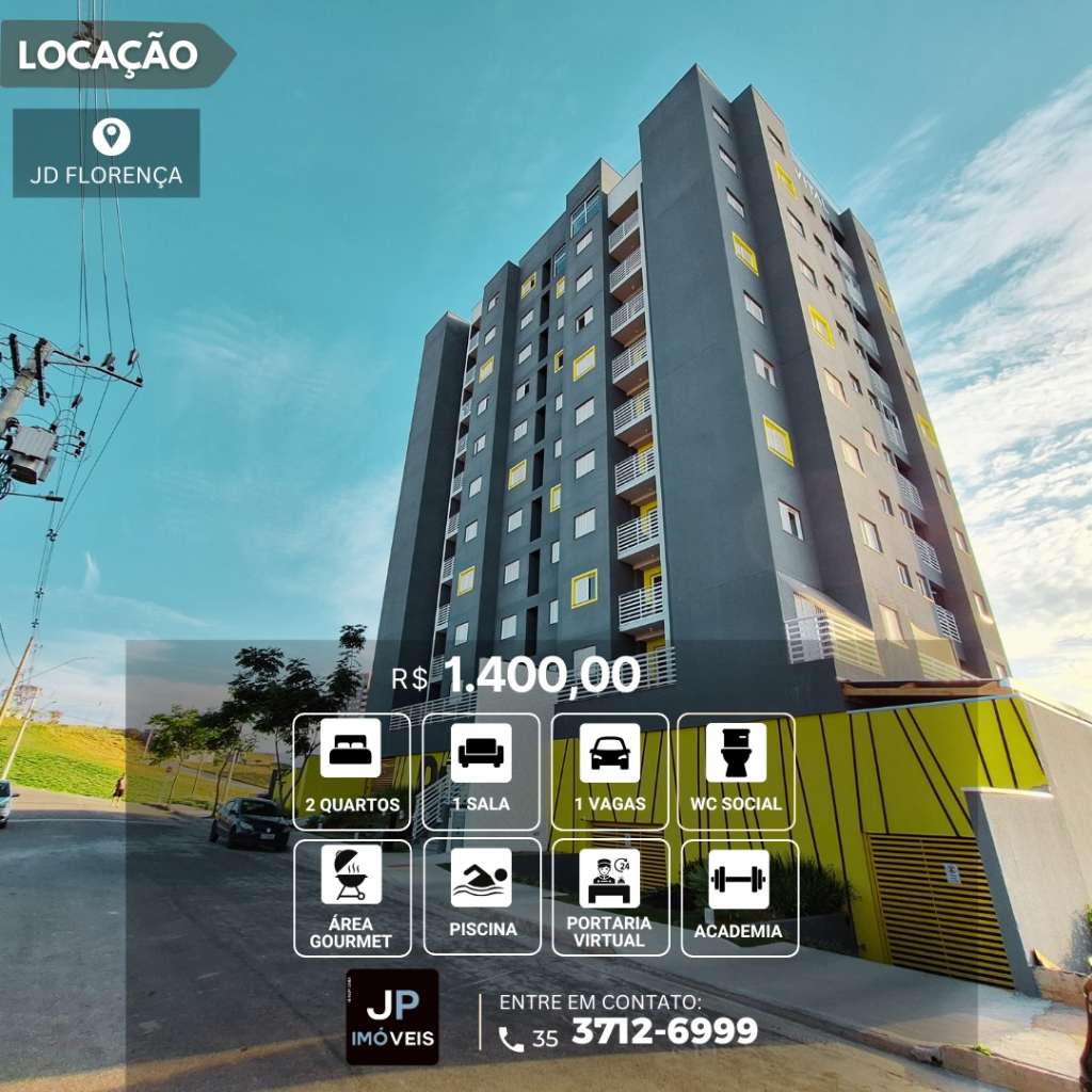 Apartamento novo, primeira locação, com localização privilegiada! Situado no bairro Jardim Florença, zona oeste da cidade, próximo ao Shopping de Poços de Caldas, faculdades, Parque Municipal e ciclovia.